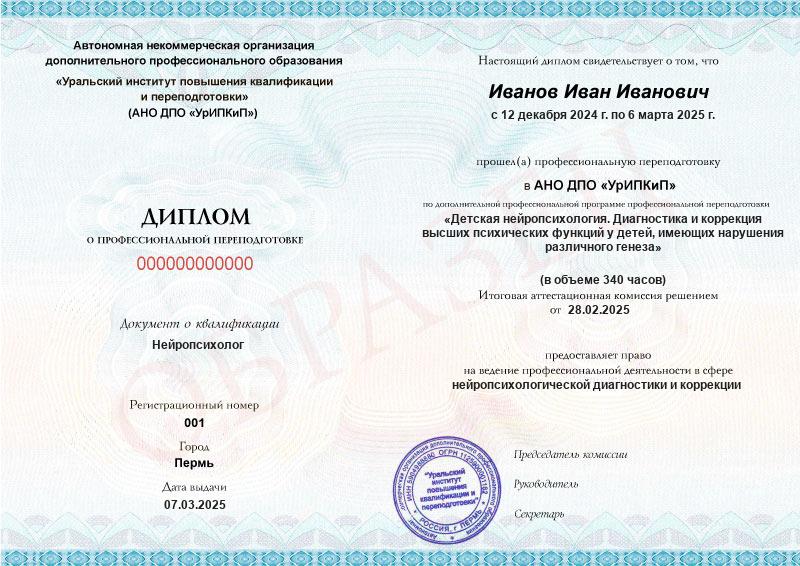 Да, дипломы и удостоверения оформляются в соответствии с действующим законодательством РФ. Документы печатаются на специальных бланках, заверяются печатью АНО ДПО «УрИПКиП».
