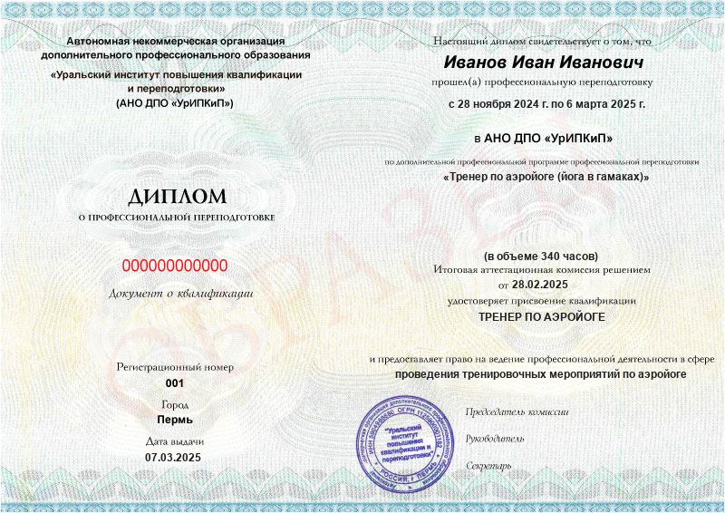 Обзор программы профессиональной переподготовки «Тренер по аэройоге (йога в гамаках)» с присвоением квалификации «Тренер по аэройоге»