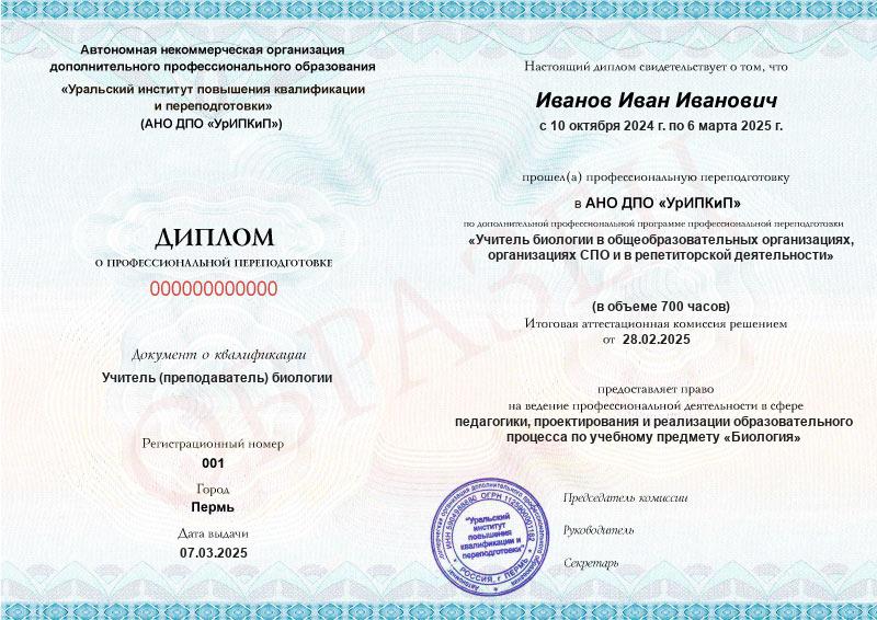 Диплом о профессиональной переподготовке после успешного прохождения итогового тестирования